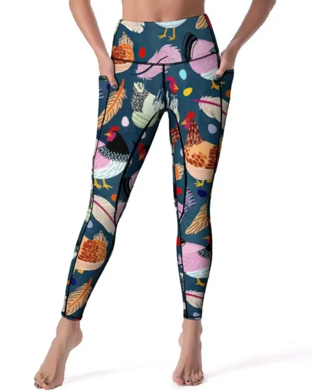 Colorful Broadcloth Polyester Chicken Print Leggings