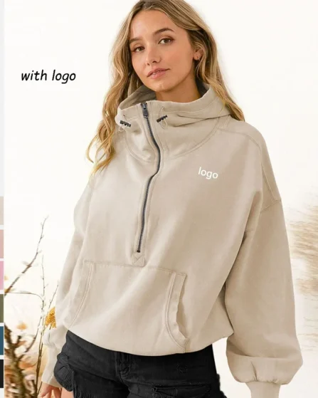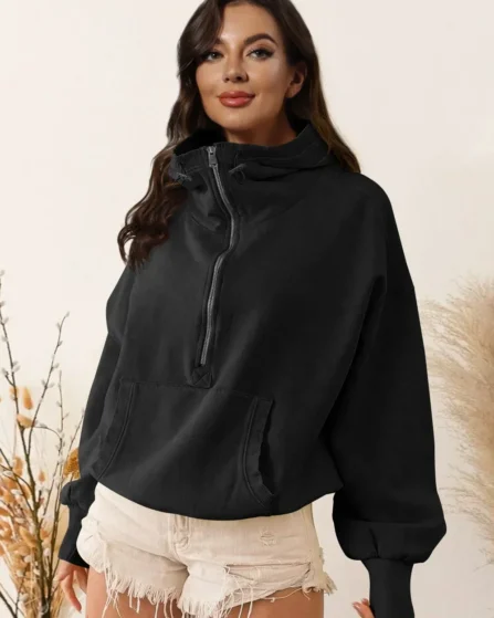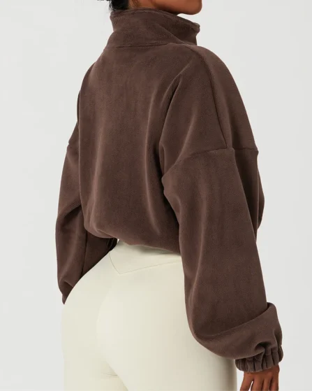 Solid Elastic Closure Half Zipper Jacket