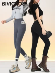 Stay warm and stylish this autumn and winter with these fleece-lined sharkskin leggings. Designed for a high waist and tight fit, these leggings are perfect for running or casual wear. The soft, thickened velvet fabric provides exceptional comfort and insulation, ensuring you stay cozy in colder temperatures. With added pockets for convenience, these leggings combine functionality with modern style.