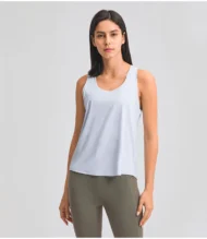 This chic backless tank top combines style and functionality, perfect for fitness enthusiasts. With a solid design and quick-dry fabric, it offers a modern look for both workouts and casual outings.