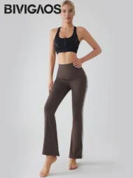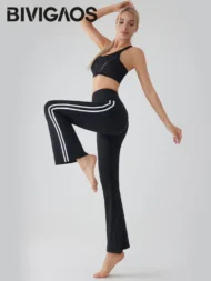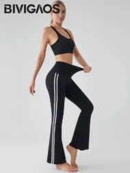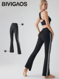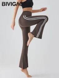 Elevate your workout wardrobe with the BIVIGAOS Striped Sports Flared Shark Leggings. Designed for comfort and style, these high-waisted pants feature a flattering fit and unique striped pattern, perfect for gym sessions or casual outings.