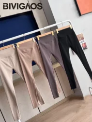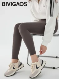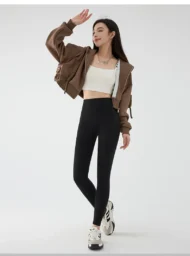 Stay cozy and stylish this autumn with these seamless brushed sharkskin leggings. Designed for comfort and performance, these leggings feature a medium high waist and a snug fit that accentuates your silhouette. Made from a soft nylon-spandex blend, they provide excellent stretch and breathability, making them perfect for casual outings or active pursuits.