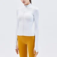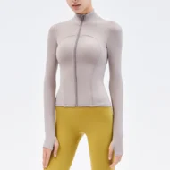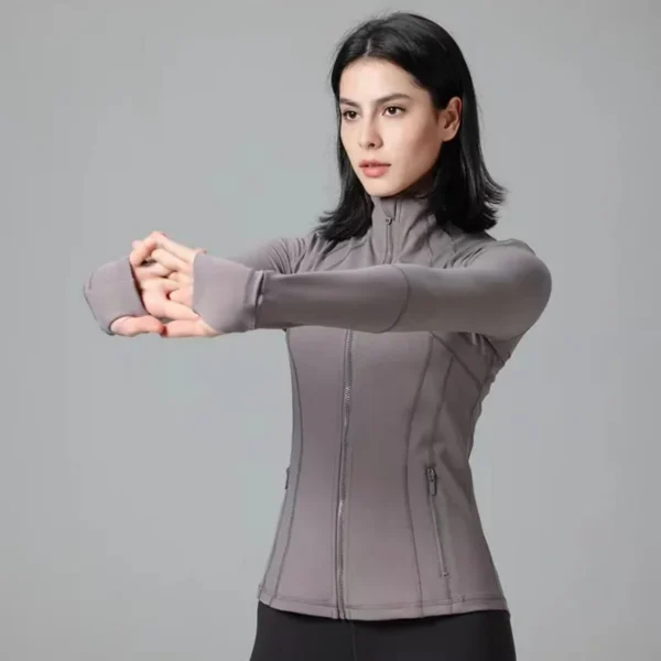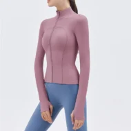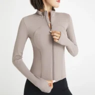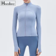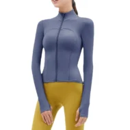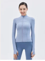 Buy your workout wardrobe with the Nude Yoga Jacket, designed for both style and performance. This long-sleeve jacket features a stand-up collar and a convenient zipper, making it an ideal choice for gym sessions, running, or casual outings. Made from a high-quality blend of nylon and spandex, the fabric provides excellent stretch, breathability, and a slim fit that flatters your figure. Available in six vibrant colors—Cyan, Blue, Purple, Black, White, and Brown—this jacket is perfect for layering during your workouts or wearing casually.