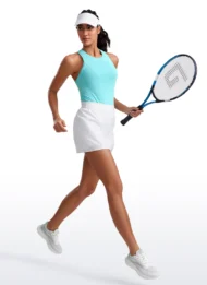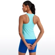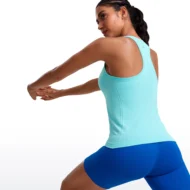 - Design: Racerback with a high neck, offering style and ease of movement.