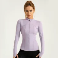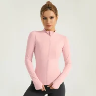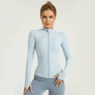 Enhance your workout attire with this slim-fit nylon sports jacket. Designed for women, this versatile jacket features a stand collar and a breathable fabric, making it perfect for yoga, running, and fitness activities. The sleek design ensures a flattering fit while providing comfort during your workouts.