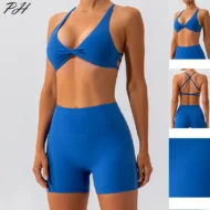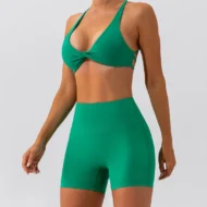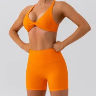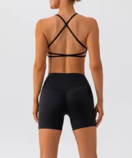 This yoga set is designed for women who want both style and performance in their workout gear. Featuring a high-waisted short and a cross-back sports bra, this set offers a flattering fit and excellent support for all fitness activities. Made from breathable, quick-dry nylon, it ensures maximum comfort during intense workouts or yoga sessions.