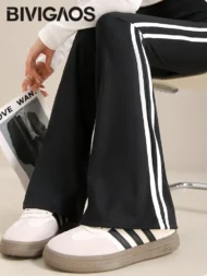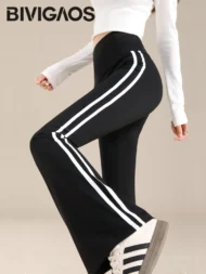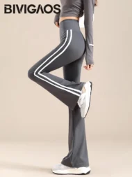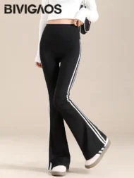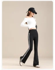 Elevate your athletic style with the Autumn New Sports White Stripe Micro Flared Leggings. These leggings combine a modern design with functional features, making them a must-have for your workout wardrobe.