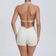 Designed for the active woman, this adjustable halter yoga set offers breathable comfort and stylish functionality. The set includes a halter-style sports bra and V-back shorts or leggings with a seamless fit, perfect for yoga, gym sessions, and fitness routines. Made from high-quality, this outfit ensures flexibility, moisture-wicking, and quick-drying properties.