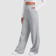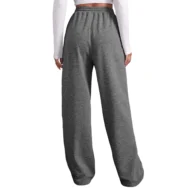 These wide-leg sweatpants feature an elastic high waist with a drawstring for an adjustable fit. The soft polyester fabric ensures comfort for travel, workouts, or casual wear.