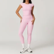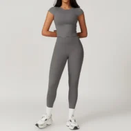 - Stylish Crop Top: The short-sleeved crop top offers a modern look while allowing for freedom of movement during workouts.
