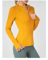 This long-sleeved, round-neck yoga shirt is perfect for keeping fit during the cooler fall and winter months. Made from breathable nylon fabric, it offers a snug, comfortable fit, ideal for yoga and other fitness activities.