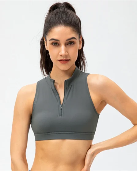 Zipper Stand Bra Fitness Vest With Chest Pad