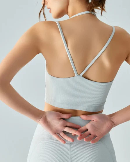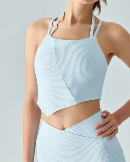 Ribbed Thin Shoulder Straps Sports Bra