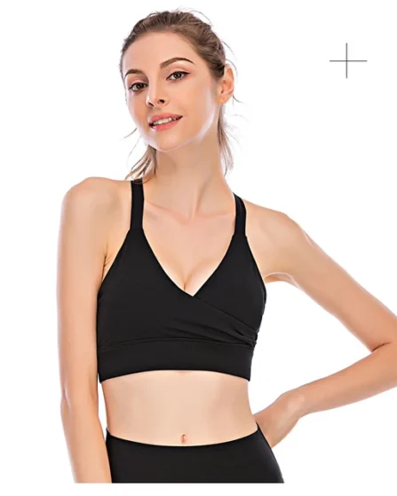 Nylon Fabric Deep V Neck Shockproof Running Bra